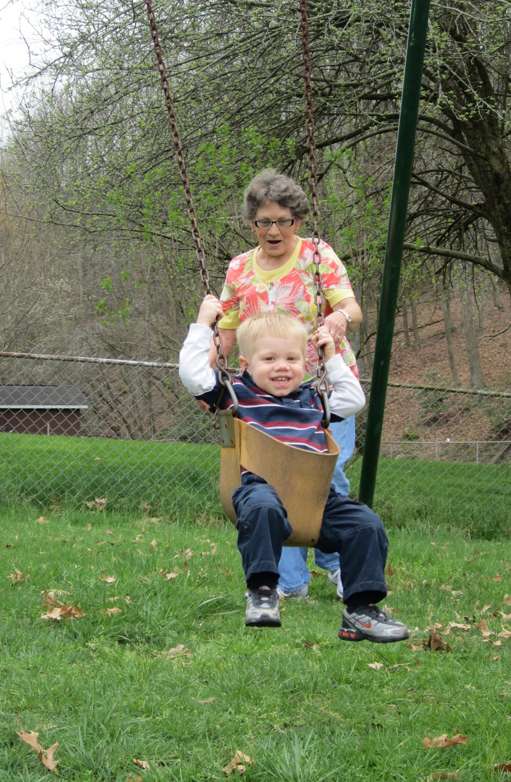 I feel that soon I can start letting Cohen write his own blog because he has SO much to say these days. Our little broken record started saying "what ya doin" a few weeks ago, although in Cohenese it sounds more like "what n doon." Just this week he has become very concerned with mommy and daddy's whereabouts at all times and if one of us leave his sight it is "where mommy go" or "where daddy go" until we get back. Neither one of us have any excuse for ever running out of gas, because we can't pass a gas station without hearing "mommy get gas" or "daddy get gas." His grandma tries to keep him as clean as possible throughout the day so he is very aware of any areas with "muhee ottah" aka muddy water...you'd be suprised how many bodies of water are muddy these days!